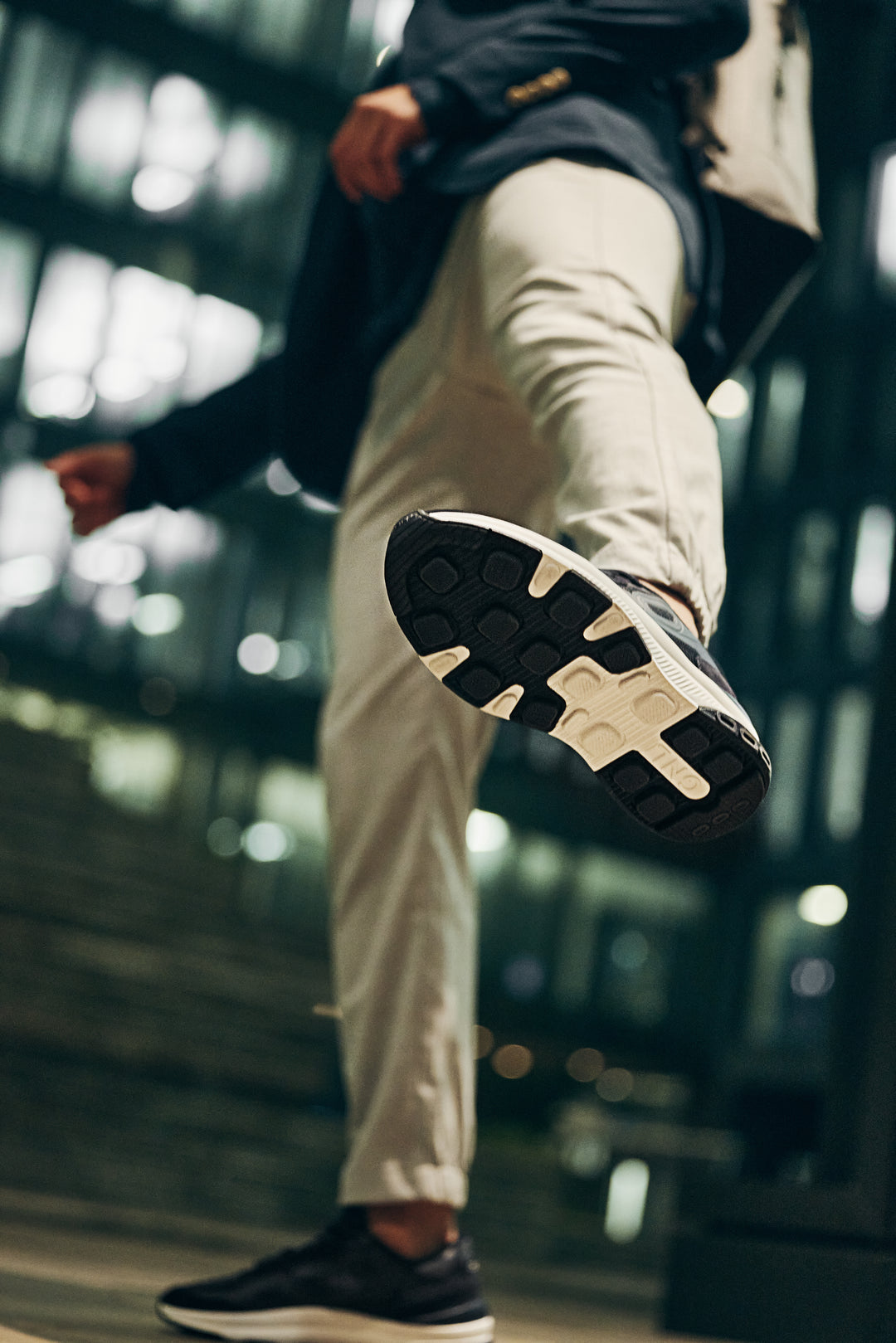 Our Glide'n Lock™️ sole , specially developed and redesigned for walking, minimizes impact stress on touchdown and ensures energy-efficient push-off thanks to our patented air-filled 360°Walk cushioning elements, which shear off on touchdown and retract into the midsole for push-off. This combination creates an effortless and weightless ride.