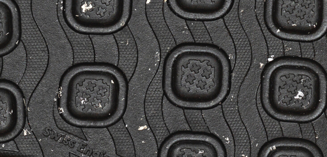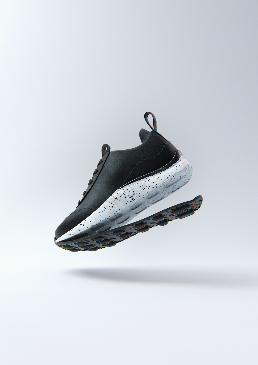 Les rainures autour des éléments d'amortissement permettent un mouvement à 360°, tandis que les chambres à air dans la semelle intermédiaire font en sorte que les éléments d'amortissement se rétractent à l'atterrissage.