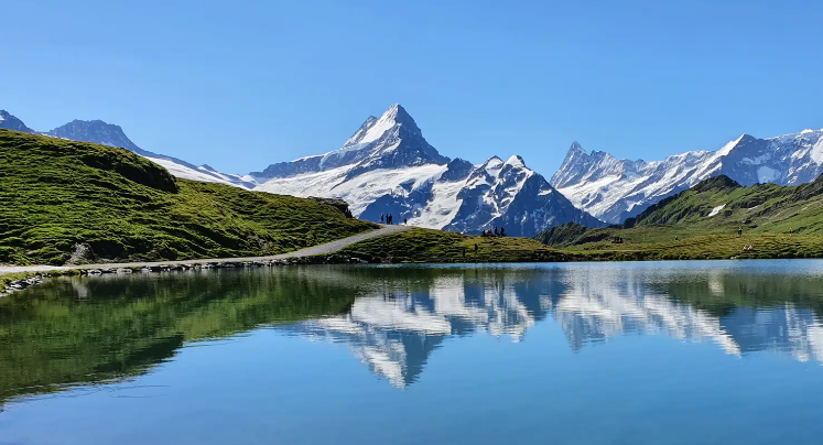 Entdecke den atemberaubenden Bachalpsee, in dessen kristallklarem Wasser sich die hoch aufragenden Gipfel der Berner Alpen spiegeln. Diese Wanderung, die von Grindelwald aus mit der Gondelbahn First zu erreichen ist, ist eine heitere alpine Flucht.