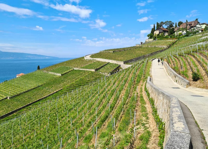 Wandere durch die Weinbergterrassen des UNESCO-Welterbes Lavaux, die sich entlang des Genfersees erstrecken. Diese Wanderung von St-Saphorin nach Lutry kombiniert atemberaubende Ausblicke auf die Weinberge, charmante Dörfer und Möglichkeiten zur Weinverkostung.
