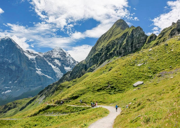 Diese leichte Wanderung bietet Panoramablicke auf die berühmten Berge Eiger, Mönch und Jungfrau. Der Weg zur Kleinen Scheidegg beginnt am Männlichen und ist ein familienfreundliches Abenteuer im Herzen der Berner Alpen.